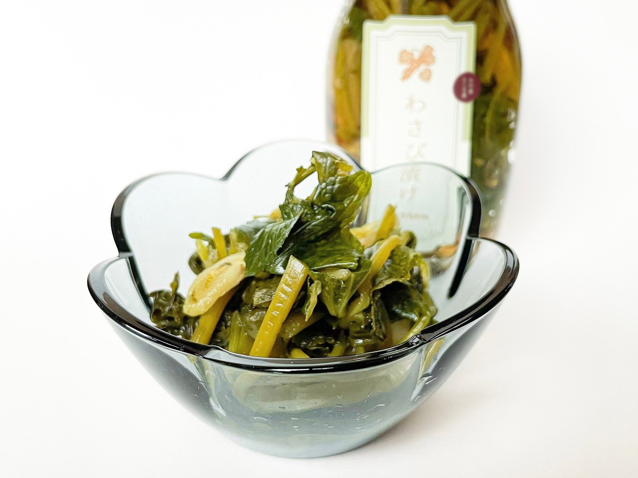 わさびの新芽のことです。辛みが強く、ビタミンA・B類やビタミンCなど栄養をたっぷりと含んでいます。